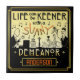 O texto inspirado, original diz, a "vida pode ser mais afiada com uma atitude ensolarada." É fez toda nas máscaras de amarelo alaranjado ensolarado, dourado em um fundo preto.