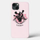 Capas de iphone personalizada, cor-de-rosa e preta, com um estranho olho assustador, com um aluno derretido. Legal design de horror para uma garota bruxa.