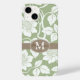Capa de telefone verde e castanho num design floral moderno; personalize com o seu nome e inicial.