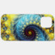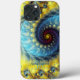 Cor azul fractal e cinzenta amarela, espiral abstrato moderna e elegante, com o nome iphone personalizado monograma 13 pro max case