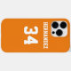 Adicione um nome e número(s) para personalizar esta capa de telefone personalizada inspirada em camisa desportiva branca e laranja. É um excelente presente para um fã ou atleta desportivo. As opções para alterar a cor e os tamanhos de fonte estão disponíveis.