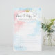 Este cartão de jogo de chá de fraldas apresenta um script de fonte moderna em fundo cor azul-d-água rosa, perfeito para um chá de fraldas de revelação de gênero!
