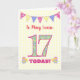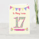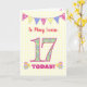 Um bonito cartão de 17 de aniversário para vocês personalizarem no cobrir da frente, com bunting de bolinhas, flores primatas e números cheios de um padrão primata, todos num fundo amarelo pálido de gingham. A mensagem do cobrir frontal é 'To (space for you to add the name) 17 HOJE!' A mensagem dentro é apenas uma sugestão e você pode personalizá-la facilmente ou excluí-la se preferir.