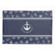 Estas capas náuticas personalizadas apresentam design marinho azul e branco com âncora, padrão de conchas e faixas para decoração de quartos de praia. Também é perfeito para decoração de iates e barcos. Digite seu nome de família e um ano usando o modelo.