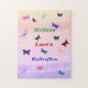 As diferentes bordas coloridas neste quebra-cabeça podem ser um desafio para o seu pequeno e pode ser personalizado com qualquer nome que ame borboletas