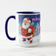 Nome personalizado caneca de café de Natal, Jolly Santas. combo azul escuro. Uma ilustração divertida excelente de Papais noeis na neve com um punhado de brinquedos de Natal. Mude o texto no prato - é tão fácil! Procure por muitos outros presentes sazonais excelentes nesta mesma faixa, especialmente as placas correspondentes!