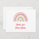cartão postal de agradecimento arco-íris pastel em rosa pastel para aniversário de meninas.