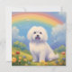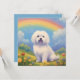 Um cartão de simpatia memorial maltês personalizado com uma bela pintura de um maltês numa colina celestial com uma bela sobrecarga do arco-íris. Simbolizar o cão maltês passou a ponte do arco-íris para o céu castrado. Você pode personalizá-lo com o nome do seu próprio cão maltês ou qualquer outro texto no verso do cartão. Faz um memorial especial ou um presente de simpatia para qualquer amante de cães malteses se o seu querido cão tiver passado.