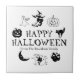 Nome personalizado feliz do Halloween decoração de azulejos cerâmicos assustadora preto e branco com texto personalizável jack ou lanterna, abóbora, bruxa, fantasma, crânio, lua, gato preto