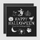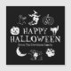 Nome personalizado do Feliz Halloween decoração de ímã assustadora preto e branco com texto personalizável jack ou lanterna, abóbora, bruxa, fantasma, crânio, lua, gato preto