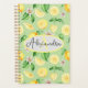 Planeador de nomes personalizado com limões pintados de cor d'água brilhante e felizes com padrão florescente em um fundo verde, apenas mude o nome.