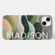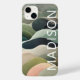 O moderno Abstrato Wavy Pattern Personalized Name capas de iphone apresenta um padrão de onda abstrato em cinzas, verde e rosa com seu nome personalizado na tipografia branca moderna. Perfeito para presentes de Natal personalizados e feriados de inverno. Concebido por © Evco Studio www.zazzle.com/store/evcostudio