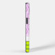As bolas de tênis criam um padrão de bolinhas brilhante, e há um padrão adicional de raquetes de tênis cor-de-rosa sobre um fundo rosa claro. Uma faixa branca dá espaço para você personalizar com um nome ou outro texto (em cor-de-rosa para corresponder aos raquetes).
