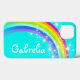 Bonito arco-íris, céu aqua e estrelas brancas, caso das meninas design. Personalize com sua própria escolha de nome para um presente personalizado de excelente. Este exemplo diz Gabrelia Desenvolvido e ilustrado exclusivamente por Sarah Trett para www.mylittleeden.com
