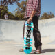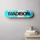 Personalize facilmente este skate colorido sobre o design abstrato da onda azul holográfica azul-turquesa azul-turquesa, apresentando na moda e estética moderna. Adicione seu nome, escolha fonte, altere tamanho e posição, adicione clipart, fotos e formas.