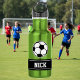 Uma garrafa de água de esportes de futebol de presente de monograma personalizada. Cor metálica do aço dos manchas verdes. Ideia de presente esportivo para treinadores, jogadores, colegas de equipe e fãs esportivos. Design de tipografia moderna com nome personalizado, citação engraçada, slogan ou monograma. Crie o seu único frasco de bebida monograma. Adequado para homens, mulheres e crianças/crianças. Festa de aniversário bonita apresenta-se para pai, filho, neto, pai, amigo, mãe, rapaz, rapariga, parceiro de negócios, colega de trabalho, etc. Disponível em cores e tamanho diferentes. Bebidas de 18oz ou 24 oz para equipes de futebol. Mercadorias com logotipo de bola de futebol.