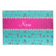 Moderno, giro, chic e moda Padrão de ginástica prata turquesa de nome personalizado (não prata real) com estrelas de simboletas de ginastas, corações e arcos de fita e com bonito diamantes cor-de-rosa (falsos não verdadeiros diamantes) com corações brilhantes e riscas de pontos personalizadas apenas com seus nomes, presentes monogramas ou suas iniciais para um presente único. As ideias da ginástica são para mulheres e meninas. Ideal para ginastas.