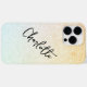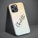 O Modern Beach Glitter Girly Chic Personalized Name iPhone 14 Pro Max Smart Capa de telefone apresenta um fundo brilhante amarelo e azul suave com seu nome personalizado em tipografia de script de caligrafia escrita à mão elegante. Perfeito como presente para o Natal, aniversário, Dia de as mães, melhores amigos, irmã e muito mais. Elaborado por ©Evco Studio www.zazzle.com/store/evcostudio