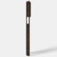 capas de iphone com uma imagem impressa de textura castanha escura de couro e seu nome e monograma iniciais em uma fonte sans serif moderna.