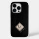 Capas de iphone de aparência exclusiva de luxo elegante com uma simples letra inicial de monograma minimalista e nome sobre um fundo de couro preto (IMPRESSO). Perfeito para uso profissional ou como presente para um homem.