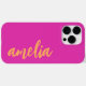 Capa de telefone com o seu nome em uma fonte de script laranja em um fundo magenta rosa quente. Design ousado e colorido.