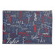 Texto de nome curto tipográfico azul, vermelho, cinza e branco em um design personalizado de travesseiro de fundo azul escuro. A cor de fundo pode ser alterada se necessário. Travesseiro personalizado de texto gráfico divertido personalizado. Ideal para o carro, acampando para as noites de inverno ou para sair. Personalize com seu próprio nome abreviado, lê atualmente Tyler para obter ajuda com a personalização e outras extensões de nome, por favor, entre em contato comigo. © Art e design por Sarah Trett para www.mylittleeden.com