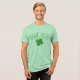 Adicione seu primeiro ou sobrenome para uma Rua personalizada personalizada personalizada personalizável. Shamrock de trevo de quatro folhas com um toque envelhecido, resmungado, com um toque antigo, em verde, numa camisa de cinza ou em outras cores.