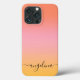 Adicione seu nome e personalize este produto. Linda coloração d'água digital, cor rosa púrpura, cor de pêssego, verde, design ombre. Simples, calma, relaxante e glamour, boho, capa de telefone moderna chique. Presente gradiente. Dons de gradiente personalizados. A Design de presentes personalizados de capa de telefone de de gradiente está disponível em diferentes produtos, consulte na coleção.