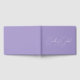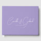 Esta caligrafia de guião branco fluindo no livro de hóspedes de lavanda é perfeita para um casamento moderno. Design minimalista simples.