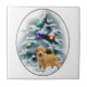 Arte de Natal refinada com um adorável norfolk terrier em frente a uma árvore de Natal carregada de neve decorada com ornamentos que parecem brilhar à luz da lua. Presentes maravilhosos para amantes do norfolk terrier.