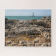 Costa rochosa ao redor do farol de La Hague - Aproveite esta Quebra-cabeça de França Normandia com uma das paisagens mais charmosas do país. Viagem enquanto ainda está em casa! Levado do ponto de vista para La Hague Lighthouse na Normandia, França Belo quebra-cabeça de farol da França, presente de excelente para viajantes! Foto tirada por Claire em ZigZagRoadTrips.com