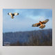 Norte Harrier e Coruja de Olho Curto brincando juntos