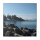 Vista de um lago Tahoe cênico e neve derrubou montanhas de Incline Village, Nevada. Primavera de 2010.