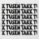 Lino preto e branco digitalizado cortou impressão de letra dizendo "Obrigado" em norueguês ("Tusen Takk").