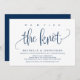 Esta carta de convite para caligrafia moderna é perfeita para a sua festa de elopeio/celebração de posto (Nós amarramos o nó). Adicione seus detalhes na correspondência entre a fonte azul do Marinho e a inscrição. #TeeshaDerrick