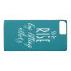 Impresso no roteiro branco corajoso em um fundo escuro de turquesa, esta capa de telefone faz uma indicação.