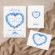 Flor esqueço-me-nots, desenho de cor da coroa e lavagem com aquarela em azul, amarelo, verde e branco. Nós nos casamos com um cartão de anúncio com sua própria foto de um lado. Personalize com sua própria mensagem convidando para uma festa ou um evento de casamento postado, nomes e sua foto. Ideal enviar a família e amigos para lhes contar as boas notícias e que não se esqueceu delas. Esquece-me original - não desenho de linha de tinta azul e aquarela sobre pintura e design por Sarah Trett para www.mylittleedenweddings.com apenas no Zazzle.