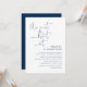 Este é o convite de casamento para uma festa de fuga, com design minimalista / minimalista de script Azul Navy clássico (Nós demos o nó)