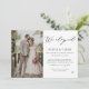 Nós fugimos do anúncio para surpreender amigos e família com a notícia do seu casamento e informá-los de seus detalhes de recepção a vir. Recursos de lançamento do recem casados "nós fugimos" em um roteiro divertido. Personalize com sua foto.
