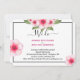 Parte do pacote de material de Casamento de Cerejeira. As flores de cereja rosa suave desenhadas à mão flutuam de um aglomerado de flores e folhas verdes pálidas. Personalize qualquer texto de script casual, e seu convite estará pronto para anunciar seu dia especial. Flores e folhas desenhadas à mão originais.