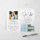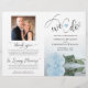 Este belo programa de casamento é moderno e elegante. O design do DIY dobrado apresenta a inscrição moderna no roteiro na primeira leitura "nós fazemos" com os nomes do casal e a data/local do casamento. Há uma foto de um belo rosa de cor azul, poeirento e empoeirado, que brilha numa piscina de água com ondas e ondulações. O dentro tem a mesma flor que um fundo de marca d'água com espaço para os detalhes da cerimônia e do partido noivo. As costas têm sua foto, junto com o espaço para uma nota de agradecimento personalizável, e uma nota memorial para reconhecer os entes queridos perdidos. Sofisticados, na moda, e chic, esses programas adicionarão classe e estilo à sua celebração de casamento. NOTA: esses programas são fornecidos como uma folha plana de papel e precisarão ser dobrados. Há uma variedade de opções de papel, mas a opção do semibrilho é um estoque de cartão leve e será difícil de dobrar de forma limpa, então recomendamos que você escolha uma opção diferente.
