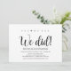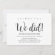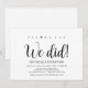 Sim, nós podemos! Nós fizemos! Este cartão de convite de casamento com tema de casamento furtivo em kraft rústico é perfeito para a recepção do seu casamento e festa de celebração pós-casamento. Adicione seus detalhes em fonte / letra preta correspondente.