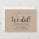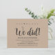 Sim, nós podemos! Nós fizemos! Este cartão de convite com tema de casamento furtivo rústico em kraft é perfeito para a recepção do seu casamento e festa de celebração pós-casamento. Adicione seus detalhes em fonte / letra preta correspondente.