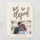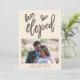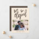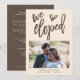 Informe seus amigos e familiares sobre sua fuga e convide-os para se juntarem a você para uma celebração pós-casamento também! O elegante roteiro We Eloped está na frente em marrom, abaixo do qual você adiciona sua foto favorita do seu casamento, e personaliza seus nomes, data e local da cerimônia em um fundo creme. No verso, personalize facilmente com o seu anúncio e detalhes do convite, que estão em um fundo marrom. As cores do verso e do texto podem ser alteradas para melhor se adequar ao tema da cor do seu casamento, se desejar, através da opção Personalizar Mais.
