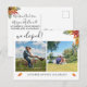 Cartão postal de anúncio de casamento com 2 fotos personalizadas. Isto é projetado para casais que fogem para o exterior e depois celebram com um pequeno reception ao voltar.