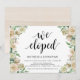 Nós fugimos, cartão de convite para recepção de casamento de fuga. Este cartão de convite com tema Primavera Neutra é perfeito para a sua recepção / festa de celebração de casamento. Adicione seus detalhes em fonte / letra preta correspondente.