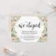 Nós fugimos, cartão de convite para recepção de casamento de fuga. Este cartão de convite com tema Primavera Neutra é perfeito para a sua recepção / festa de celebração de casamento. Adicione seus detalhes em fonte / letra preta correspondente.