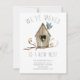 Novo cartão de anúncio em movimento do ninho e uma casa de pássaros com pássaros. Sacudir nossa nova placa de endereço para ver uma folha de trás coordenadora para um toque especial extra.