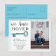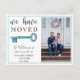 Informe seus amigos e familiares sobre seu novo endereço com este cartão postal de anúncio de chave rústica. Este modelo apresenta uma foto da família para você personalizar e uma chave azul vintage. Texto totalmente personalizável, muito simples de editar com seus dados pessoais.