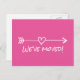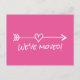 Cartões postais de mudança de endereço com seta de coração e cor de fundo colorida, ou seja, rosa neon. Cartões postais de mudança com modelo de tipografia de caligrafia. Texto de mudança personalizado; Nós nos mudamos! Adicione o novo endereço de sua casa no verso. Cartões de mudança modernos e simples para nova casa, festa de inauguração ou localização comercial. Impressão fofa para casal de recém-casados.